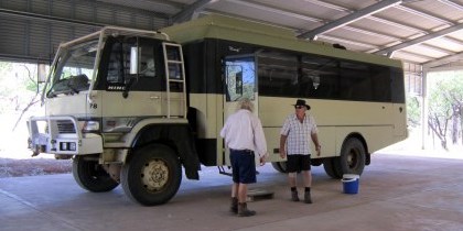 On our return to Normanton, there was the weekly refrigerated truck with fresh veggies and fruit for sale parked behind the pub. Very social occasion. There's Cindy paying up on the left.