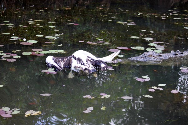 We followed this croc as he spotted a dead pelican floating on the surface. He approached it with great caution and when he finally reared up and grabbed it we all nearly died of fright!
