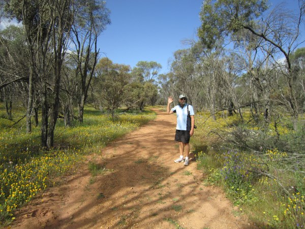 Above left is David on our first of two walks through the valley around Depot Hill, Mingenew, and above right a wreath flower.